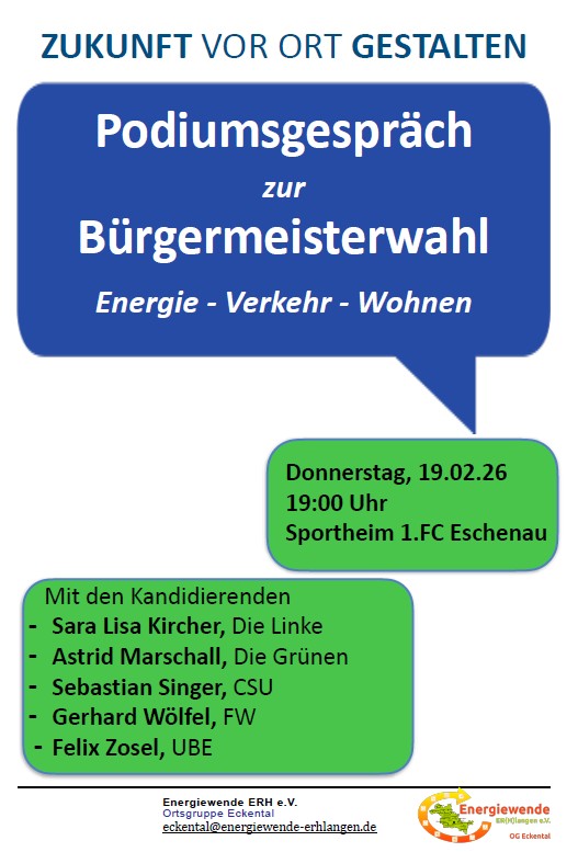 Podimsdiskussion am 19.02.26 Veröffentlicht 12. Februar 2026 um 527 × 777 in UBE Wahlveranstaltungen in Eckental ← Vorheriges / Nächstes → Einladung zur Podiumsdiskussion am 19.02.26
